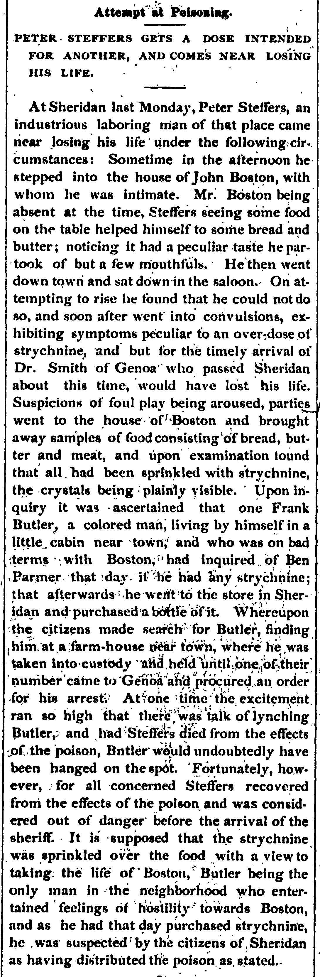- Genoa Weekly Courier, 11 April 1884, pg 3, col 2, an untitled item
